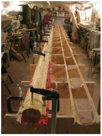 La résorcine n'est pas une colle structurelle, le fim de collage doit donc être le plus fin possible, d'où des ajustagess précis et une pression de serrage importante.